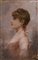 "Ritratto di giovane ragazza di profilo" olio su cartone pressato (cm 23x15) Firmato in basso a destra. In cornice (difetti)
