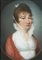 Maestro della fine del sec. XIX "Ritratto di gentildonna in abito bianco" pastelli colorati su carta intelata (cm 30x22) In cornice del sec. XIX in legno dorato decorato a palmette (difetti)