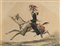 Litografia acquerellata del sec. XIX raffigurante una caricatura di ufficiale a cavallo (cm 26x34) In cornice (difetti)
