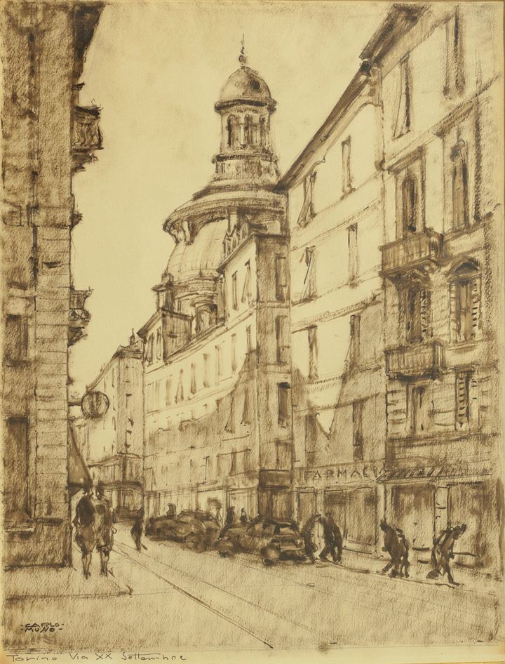 MUSSO CARLO Balangero (TO) 1907 - 1968 "Torino - Via XX Settembre" 37,5x48,5...