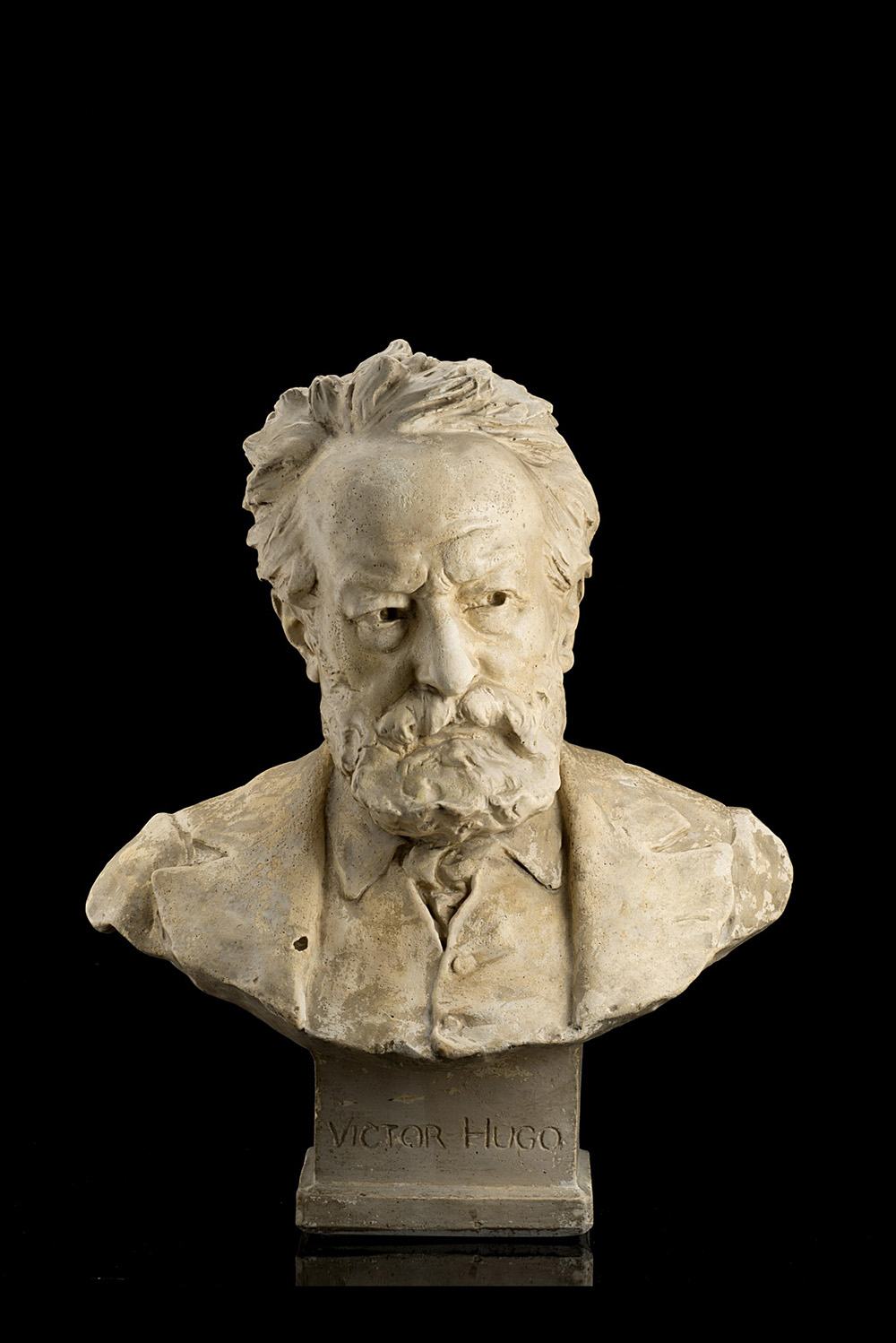 Gesso bust of Victor Hugo, signed to reverse (h. cm 44)