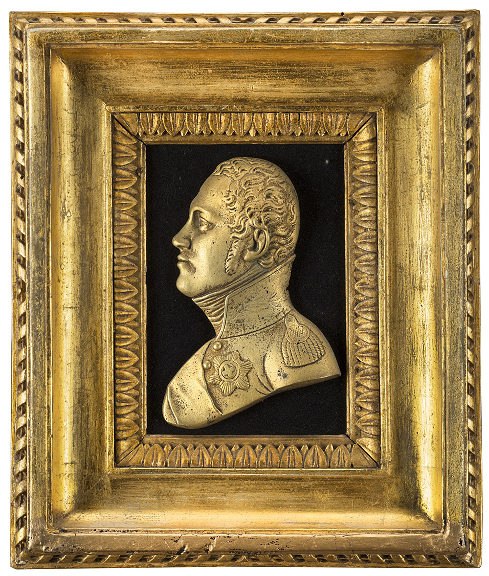 Arte del sec. XIX "Ritratto dello zar Alessandro I di Russia" altorilievo in bronzo (cm 13x9) In cornice in legno dorato.