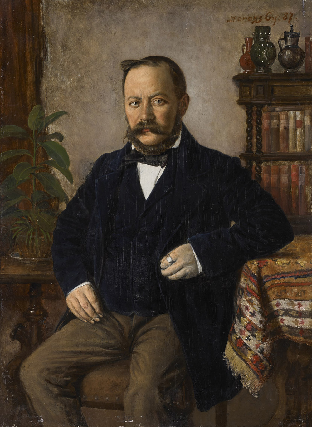 Undeciphered signature, 19th century "Portrait of a Gentleman in an Interior" oil on panel (cm 32x23.5) Signed and dated 87 at top right. label to reverse. Framed (restorations)