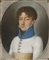 German school of the first half of the 19th century "Lady with a Blue Ribbon" and "Austrian Officer in Uniform" pair of oval pastels on paper. Inscribed to reverse (cm 21x8) . Framed (defects)