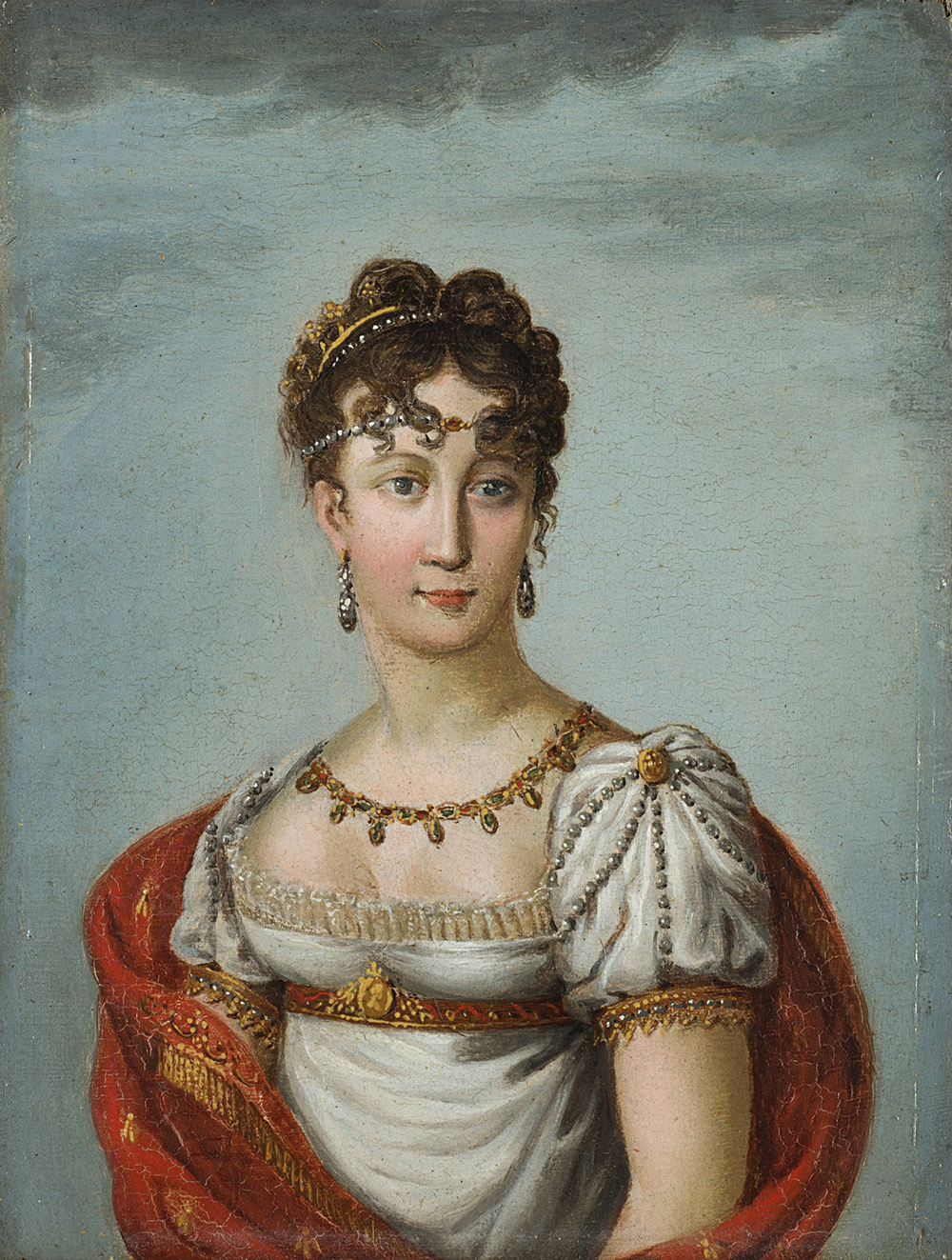School of the 19th century "Napoleon and Josephine" pair of oils on panel (cm 18x13.5) Framed