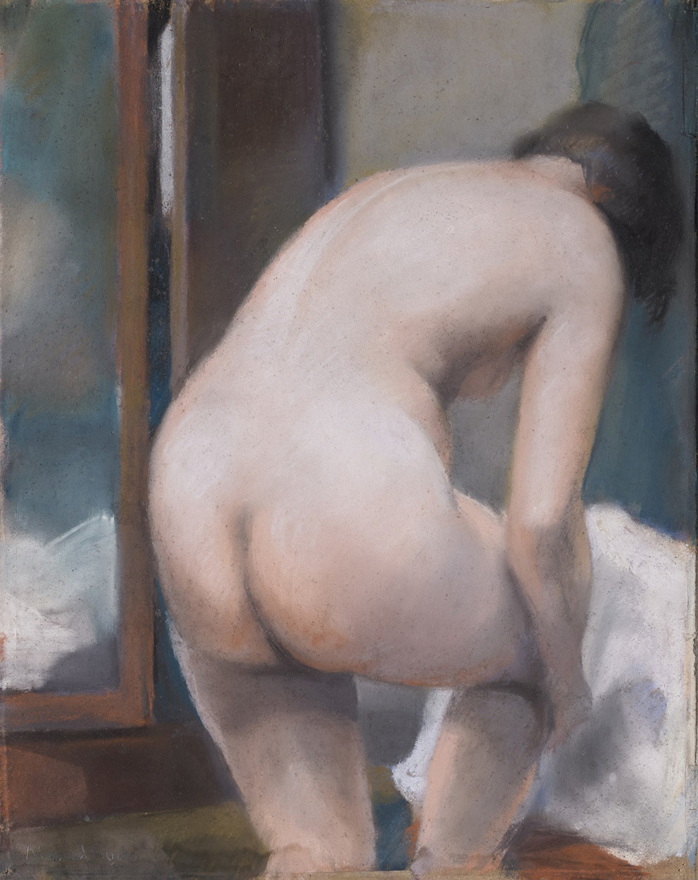"Female Nude" coloured pastels on paper (cm 40x32) Signed and dated '30 at bottom left. Framed (defects)