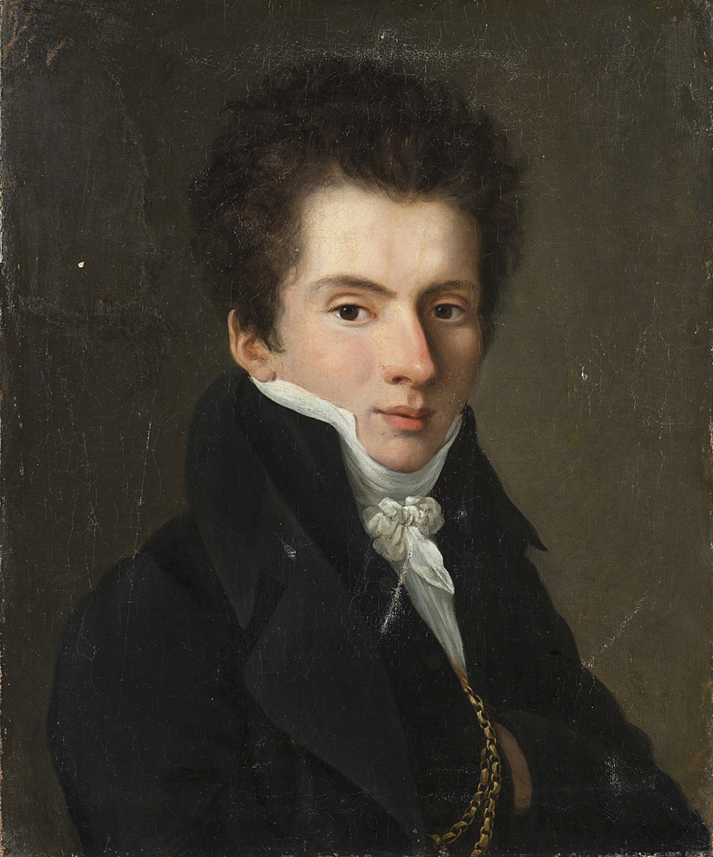 Scuola francese sec. XIX "Ritratto di gentiluomo" olio su tela (cm 54x45) (difetti)