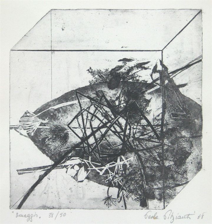 PITZIANTI PAOLA Cagliari 1938 "Omaggio" 1968 49x34,5 foglio, 27x25 acquaforte...