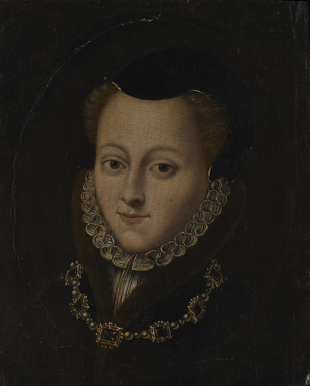 Northern European school of the early 17th century "Portrait of Mary Stuart, Queen of Scots" oil on panel (cm 22x18) Framed (defects, restorations, remakes)
