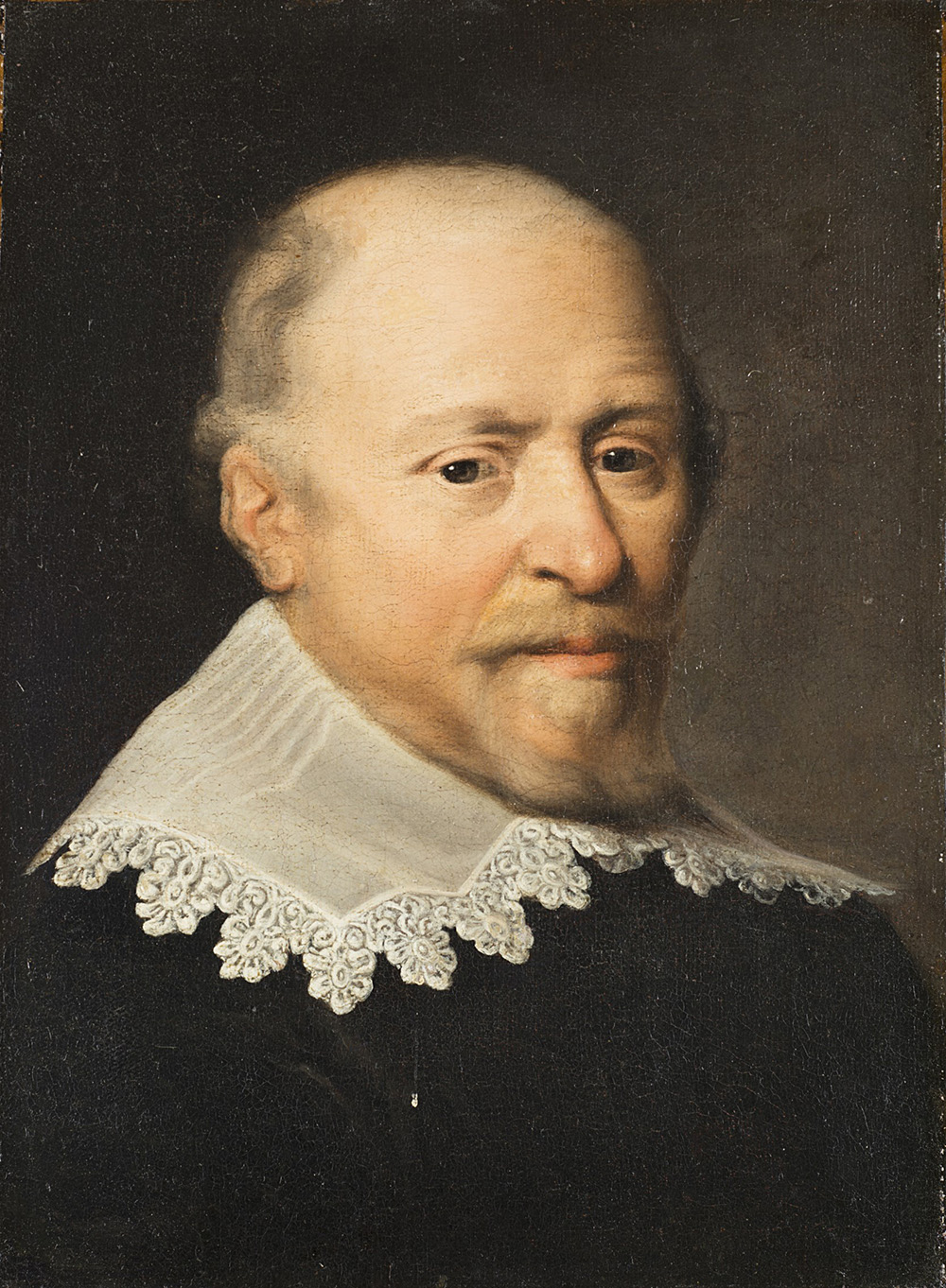 Artist of the 17th century "Portrait of a Gentleman in a Dark Suit with Large White Collar" oil on canvas (cm 48x38.5) Framed