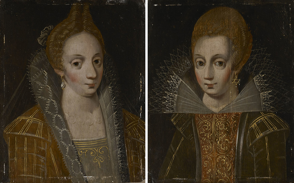 Maestro dell'Europa settentrionale "Ritratti di gentildonne" coppia...