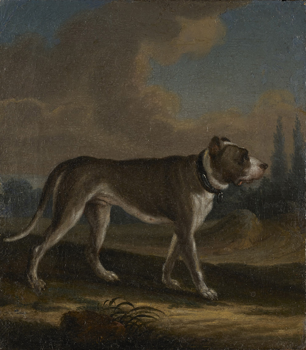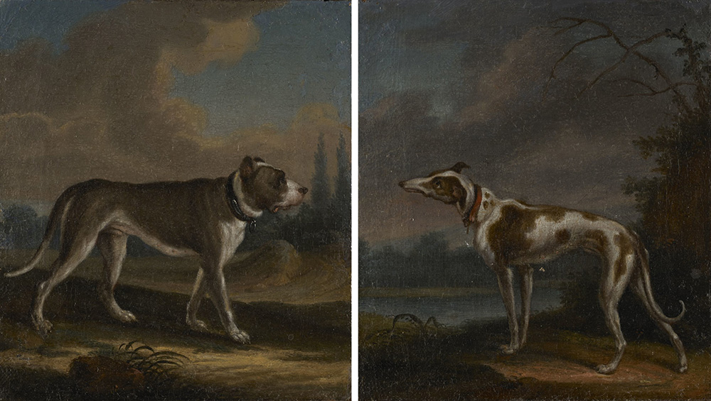 Master of the 18th century "Greyhound and Mastiff" pair of oils on panel (cm 17x15) Framed (defects)