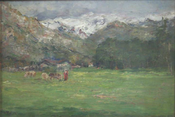 PUGLIESE SANDRA Alessandria 1877 - ? "Al pascolo" 26x37 olio su tavoletta...