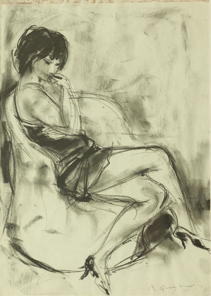 QUAGLINO MASSIMO Refrancore (AT) 1899 - 1982 Torino "Donna distesa" 41x28...