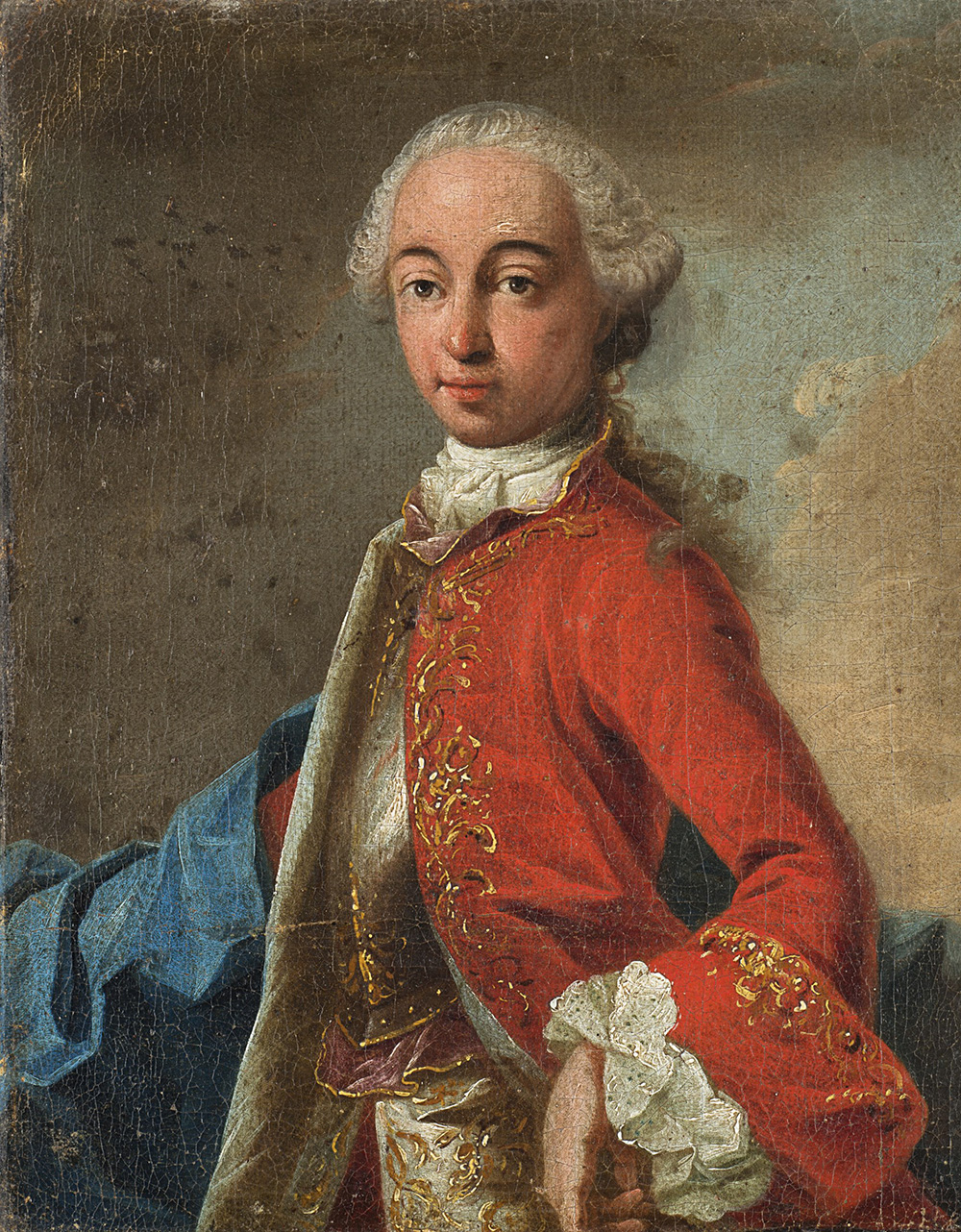 Master of the mid-18th century "Portrait of a Young Ruler" oil on canvas (cm 34x27) Traces of label to reverse. Framed (restorations)