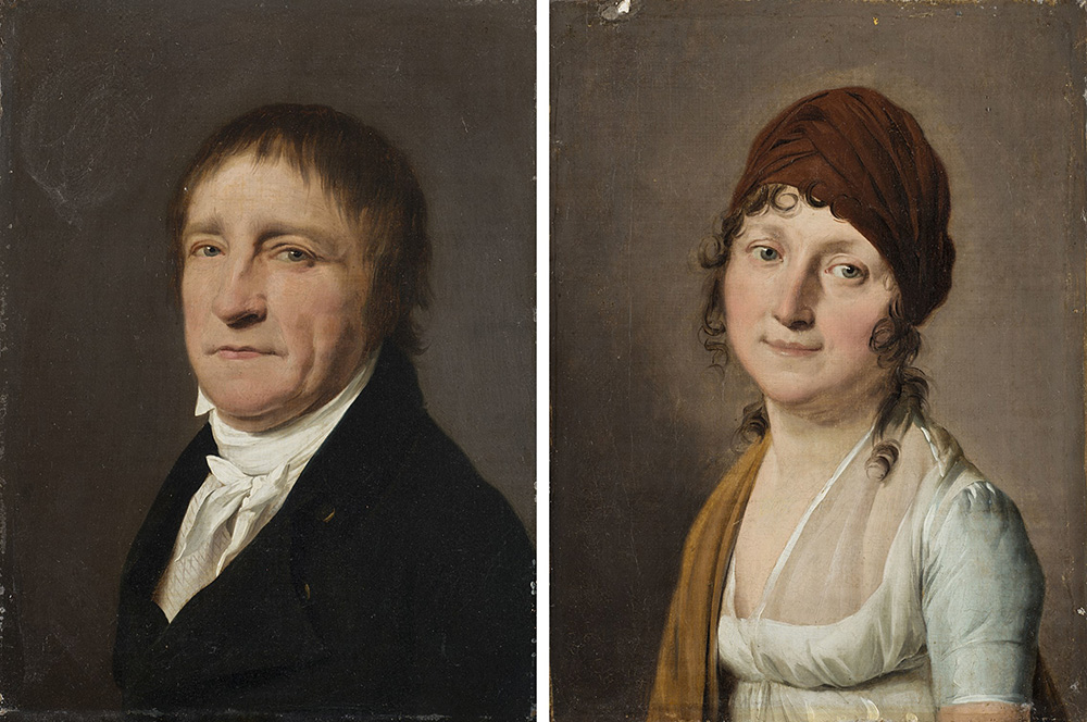 (attributed) "Portrait of a Gentleman and a Lady" pair of oil on canvas (cm 22x16.5) Framed (defects)