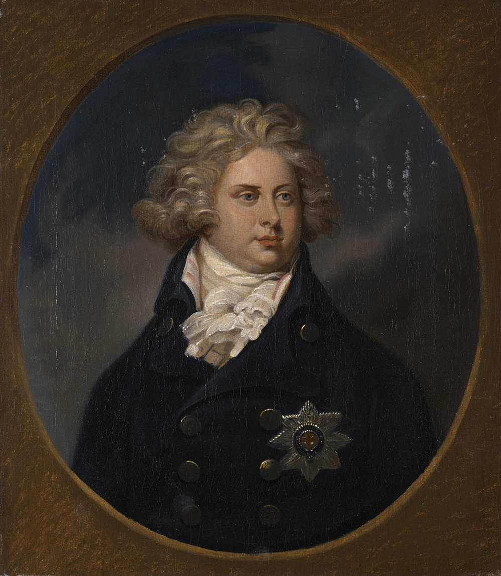 School of the early 19th century "Portrait of an English Lord" oil on canvas (cm 35x30.5). Framed (defects)