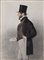 "Ritratto di gentiluomo di profilo con tuba" matita e acquerello su carta (cm 17,5x13) Inscritto sul passepartout. Provenienza: Sotheby's, etichetta sul fianco