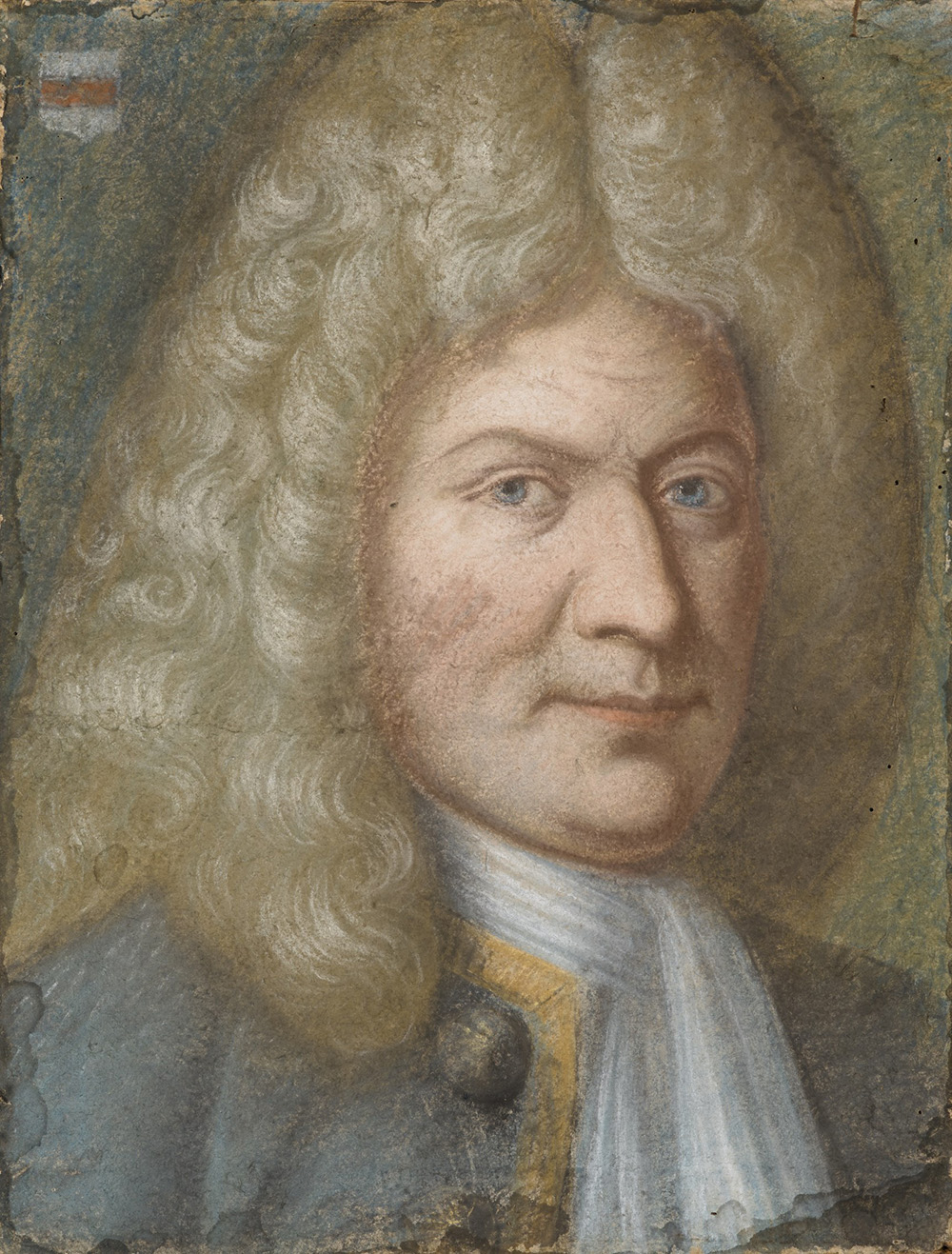 Scuola del sec. XVIII "Ritratto di gentiluomo con parrucca e stemma...