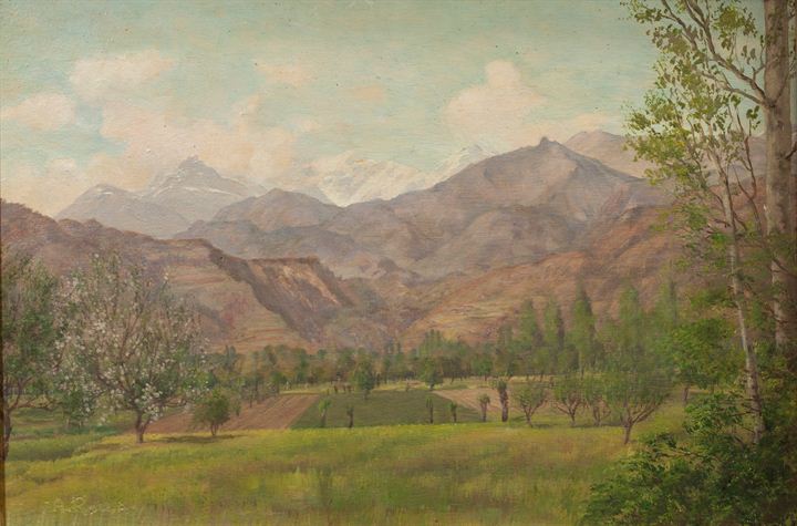 ROLLA ADOLFO Buenos Aires 1899 - 1967 Torino "Primavera a Chiusa" 28x40 olio...