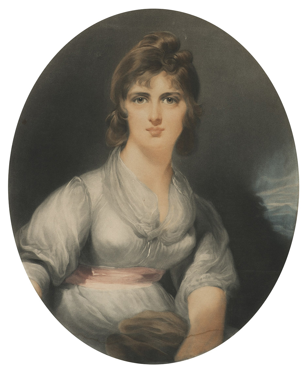 Scuola del sec. XIX "Ritratto di gentildonna con abito grigio" acquerello ovale su cartone pressato ovale (cm 53x44) In cornice in mogano filettato e decorato agli angoli con raggiere in legno chiaro (difetti)