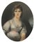 School of the 19th century "Portrait of a lady wearing a grey dress" watercolour on oval-pressed cardboard (cm 53x44) Framed (defects)