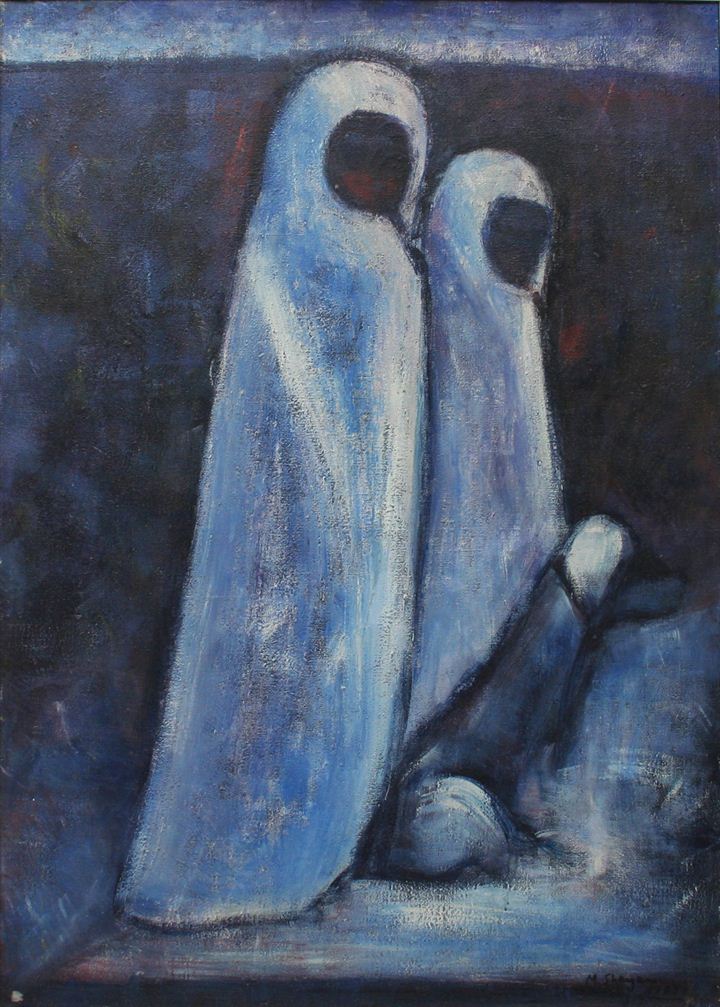 SHAJANO M. "Figure nel blu" 1963 124x89 olio su tela Opera firmata e datata...