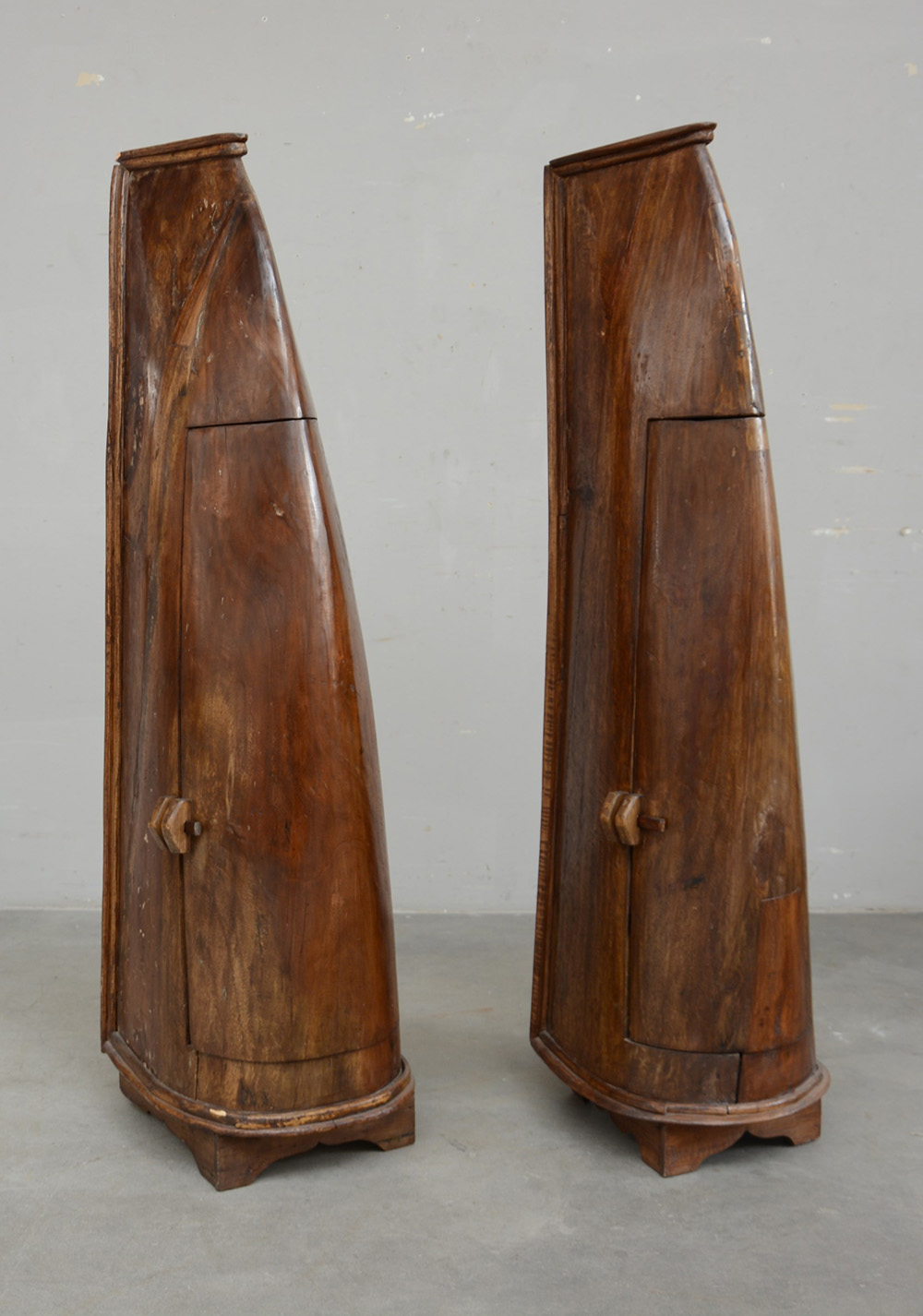 Coppia di mobili ad uno sportello ricavati da canoe (h cm 165) (difetti)