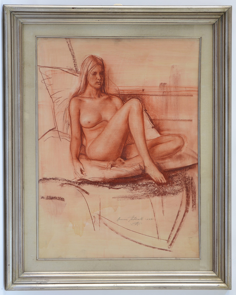 Romano Stefanelli (1931) "Ritratto di modella", tecnica mista su compensato (cm 78x57) firmato e datato LXX1 in basso al centro; timbro al verso della Galleria d'Arte Moderna Sala delle Muse, in cornice