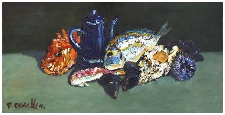 GIUSEPPE CAVALLINI 1916 - 2000 Senza titolo Olio su tavola 40 x 80. Firma in b. a s.