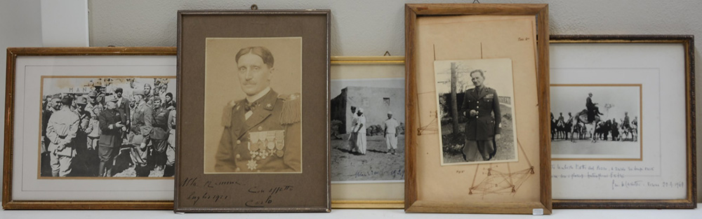 Gruppo di cinque fotografie di soggetto prettamente militare, in cornici (difetti)
