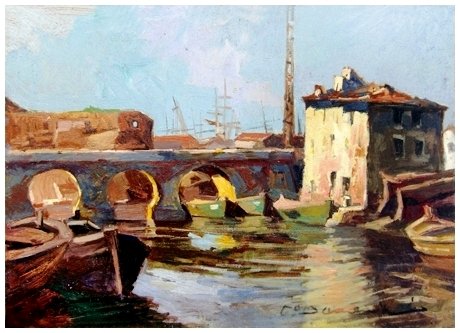 CARLO DOMENICI 1898 - 1981 Livorno - quartiere Venezia Olio su faesite 35 x...