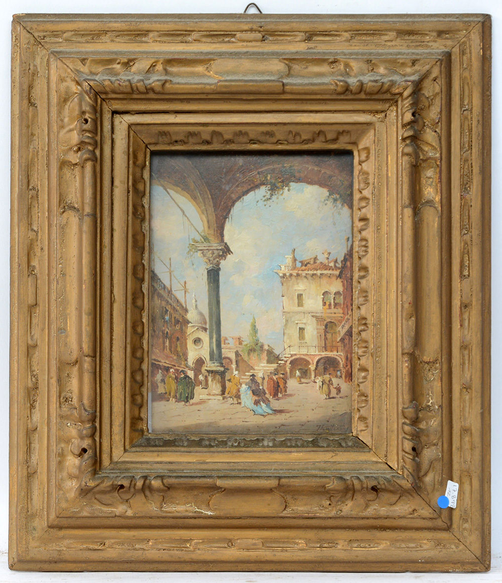 Ignoto "Capriccio veneziano" olio su tavoletta (cm 18x13) in cornice (difetti)