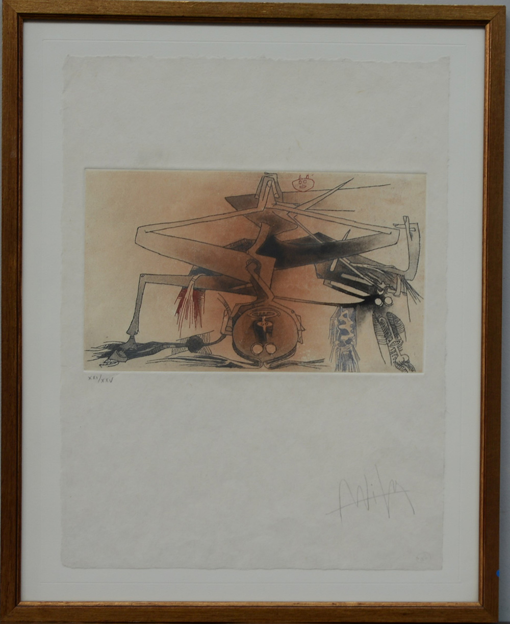 Wilfredo Lam (Sagua La Grande (Cuba) 1902 - Parigi 1982) “Composizione” Incisione es. XXI/XXV, cm 50x38 Firmato e numerato in basso. In cornice