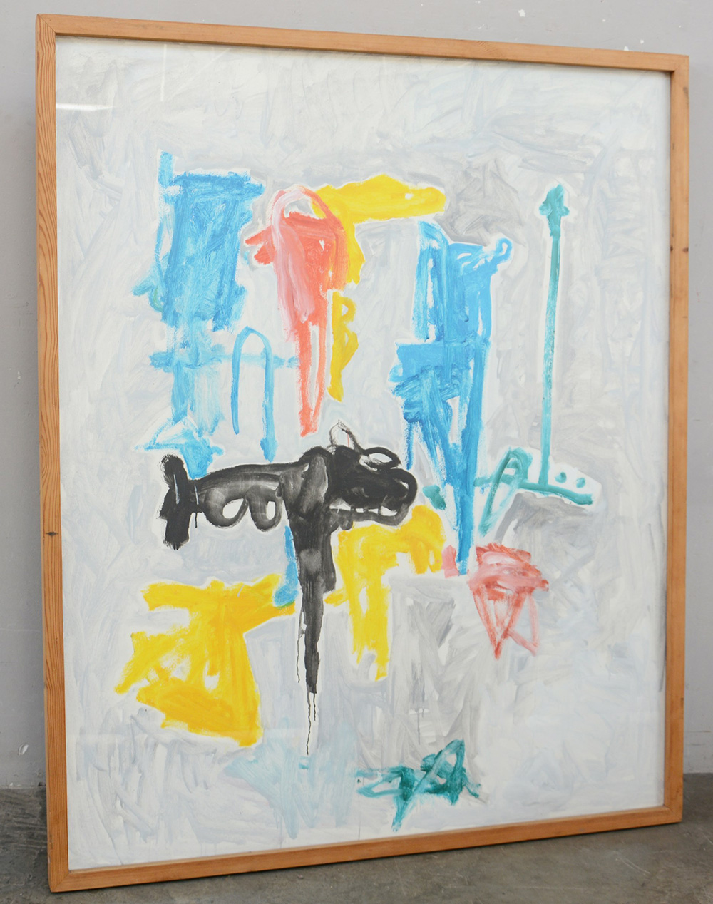Ignoto "Senza titolo" 1990, tecnica mista su masonite (cm 140x114) reca firma indecifrata e la data al retro, in cornice