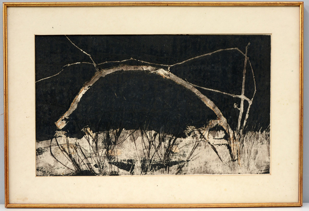 Firma indecifrata "Senza titolo" 1970, acquaforte e acquatinta, prova d'artista (battuta cm 14,5x11 foglio cm 29x20,5) inscritta, firmata e datata in basso in lapis. In cornice