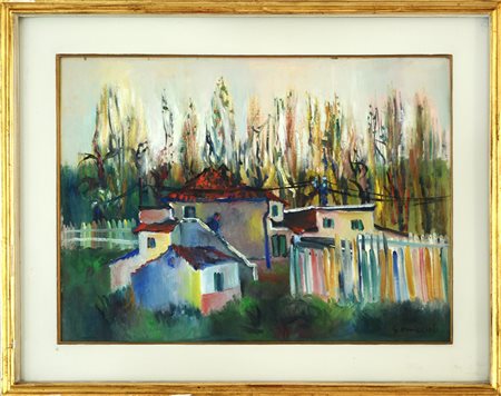 Giovanni Omiccioli (Roma 1901 - 1975) "Case" olio su cartone telato (cm...