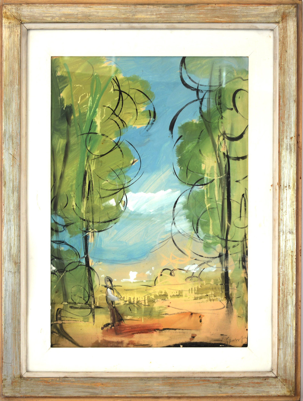 Luigi Spazzapan (Gradisca d'Isonzo 1889 - Torino 1958) “Paesaggio” Tecnica mista su carta (su masonite), cm 69,5x49 firmato al retro.In cornice Provenienza: Galleria d'Arte Brera, Milano.