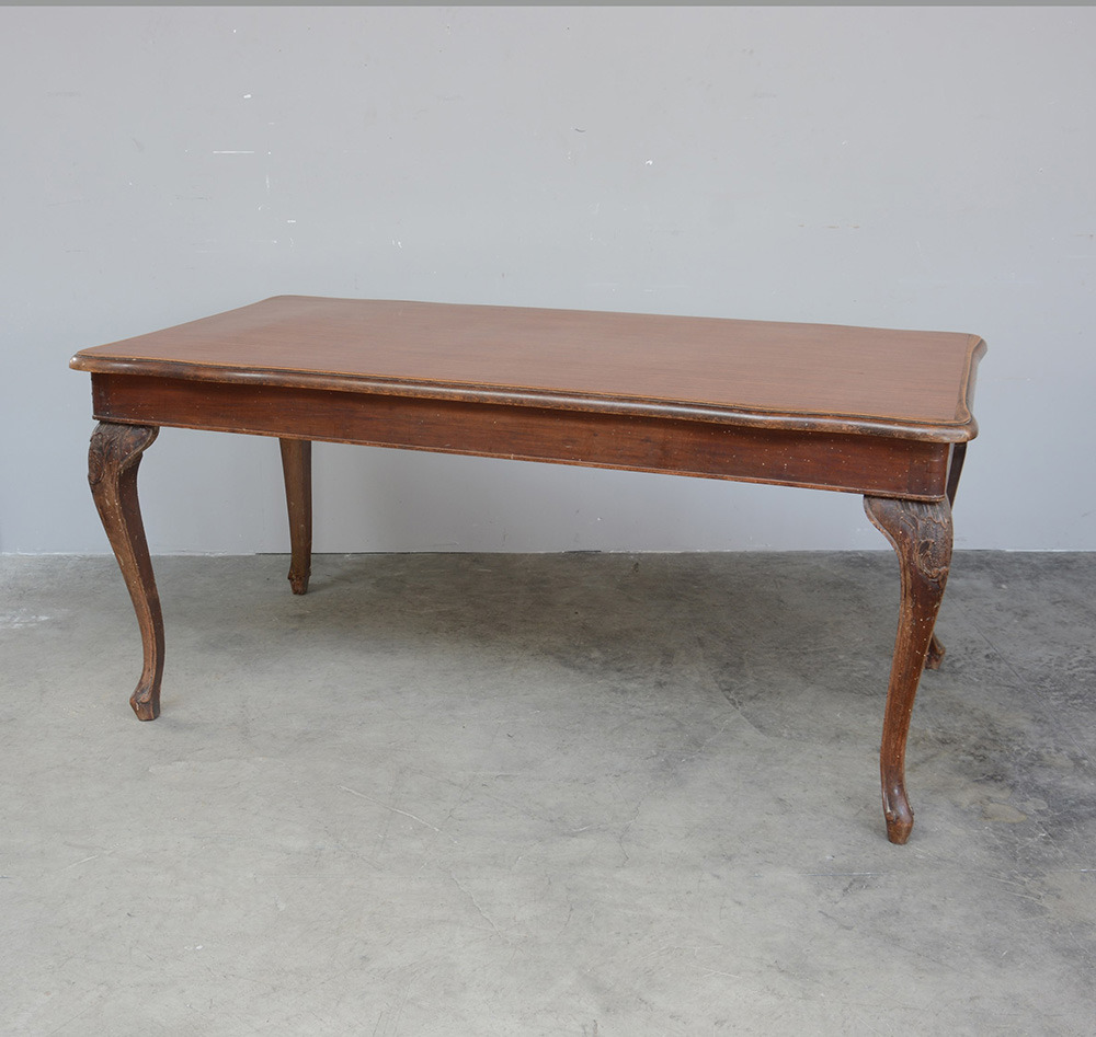 Arte Veneta. Tavolo da pranzo rettangolare con gambe sagomate e intagliate (cm 172x78x91) (difetti al piano e restauri)