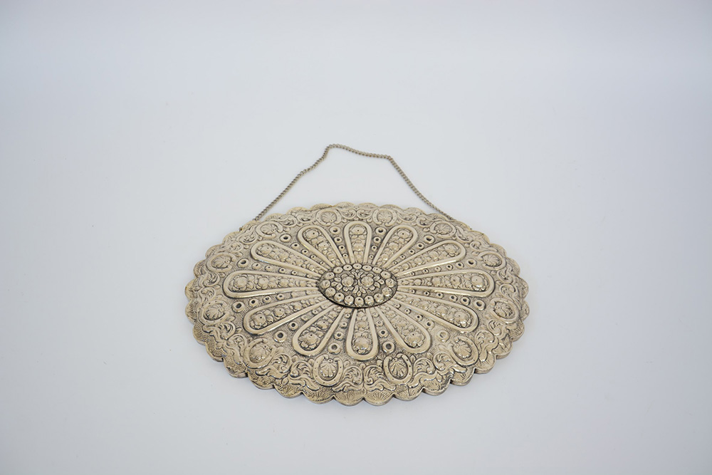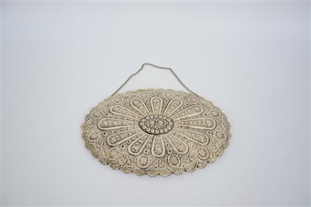 Specchio con cornice in lamina d'argento. Sec. XX (cm 35x4) (difetti)