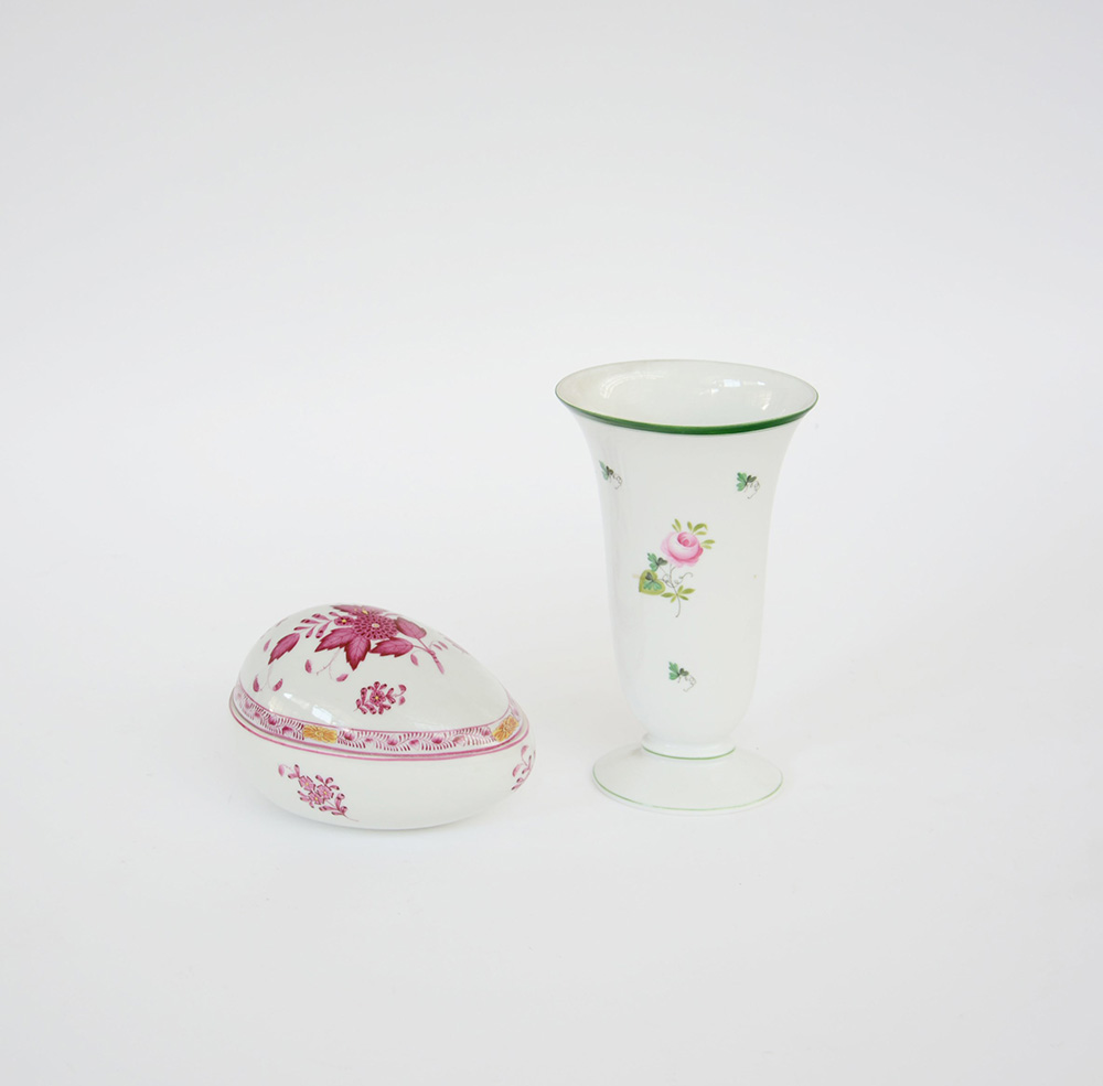 Manifattura di Herend. Lotto composto da un vasetto e una scatola in porcellana policroma (difetti)