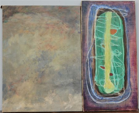 Lotto di due dipinti moderni ad olio su tela, autori e misure diverse (difetti)