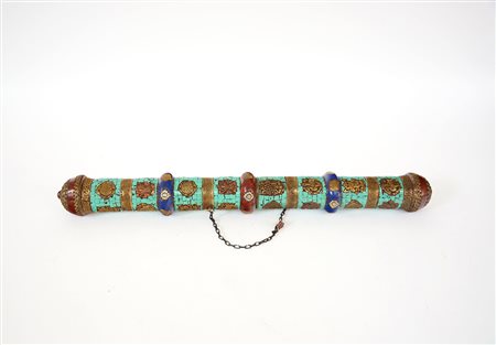 Porta preghiera in lame e metallo Tibet, secolo XX (difetti)