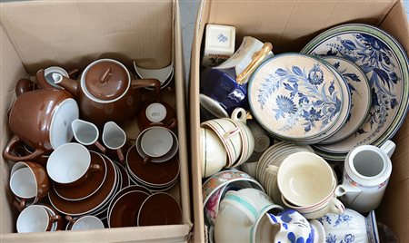 Lotto composto da due cartoni contenenti servizi da te e stoviglie di vario...