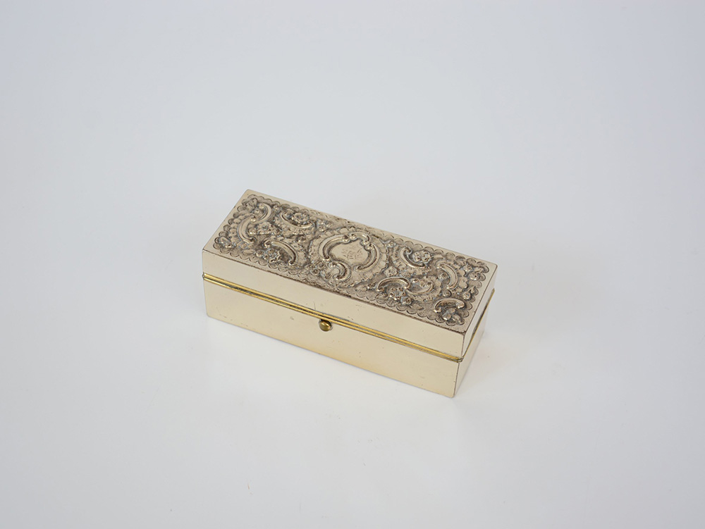 Scatola porta sigarette in argento. Londra, 1891 (cm 16x6xh. 5,5) (g lordi 350 ca.)(difetti)