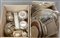 Lotto di due cartoni contenente numerosi oggetti per la tavola in metallo...