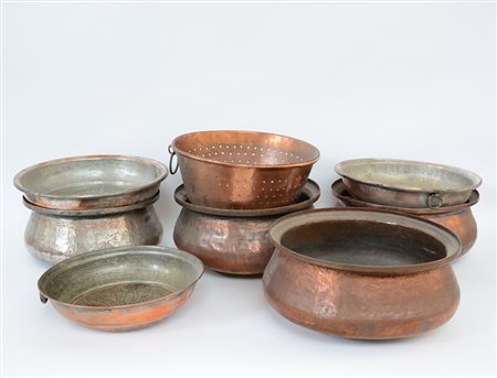 Lotto composto da quattro contenitori quattro setacci in metallo e rame...