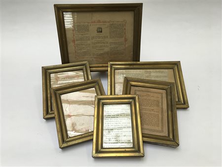 Lotto composto da sei cartaglorie di misure diverse in ottone e legno (difetti)