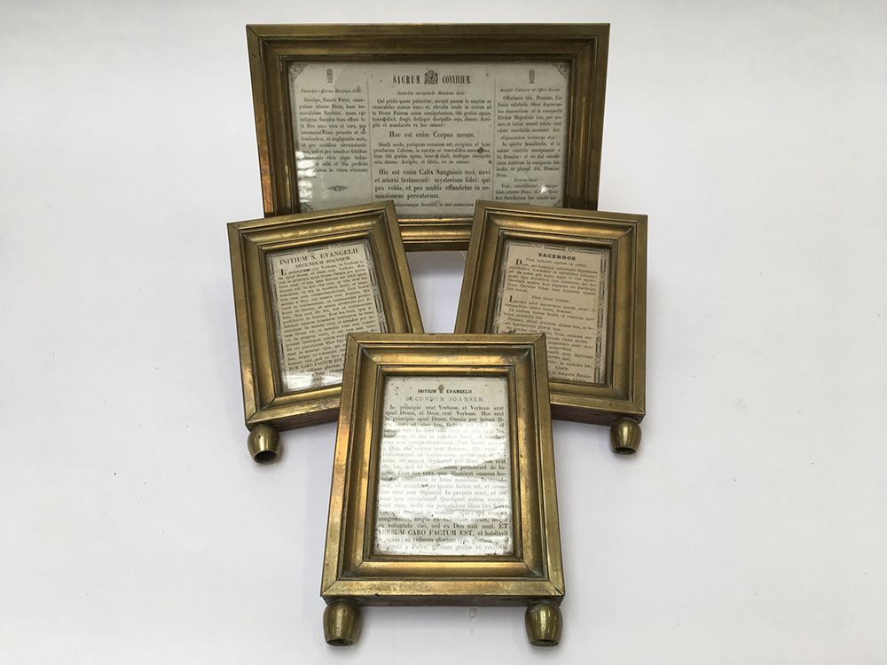 Lotto composto da quattro cartagloria in ottone e legno con piedini torniti (difetti)