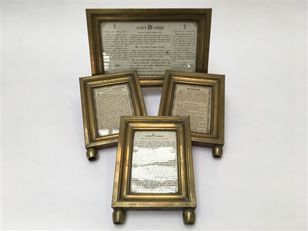 Lotto composto da quattro cartagloria in ottone e legno con piedini torniti...